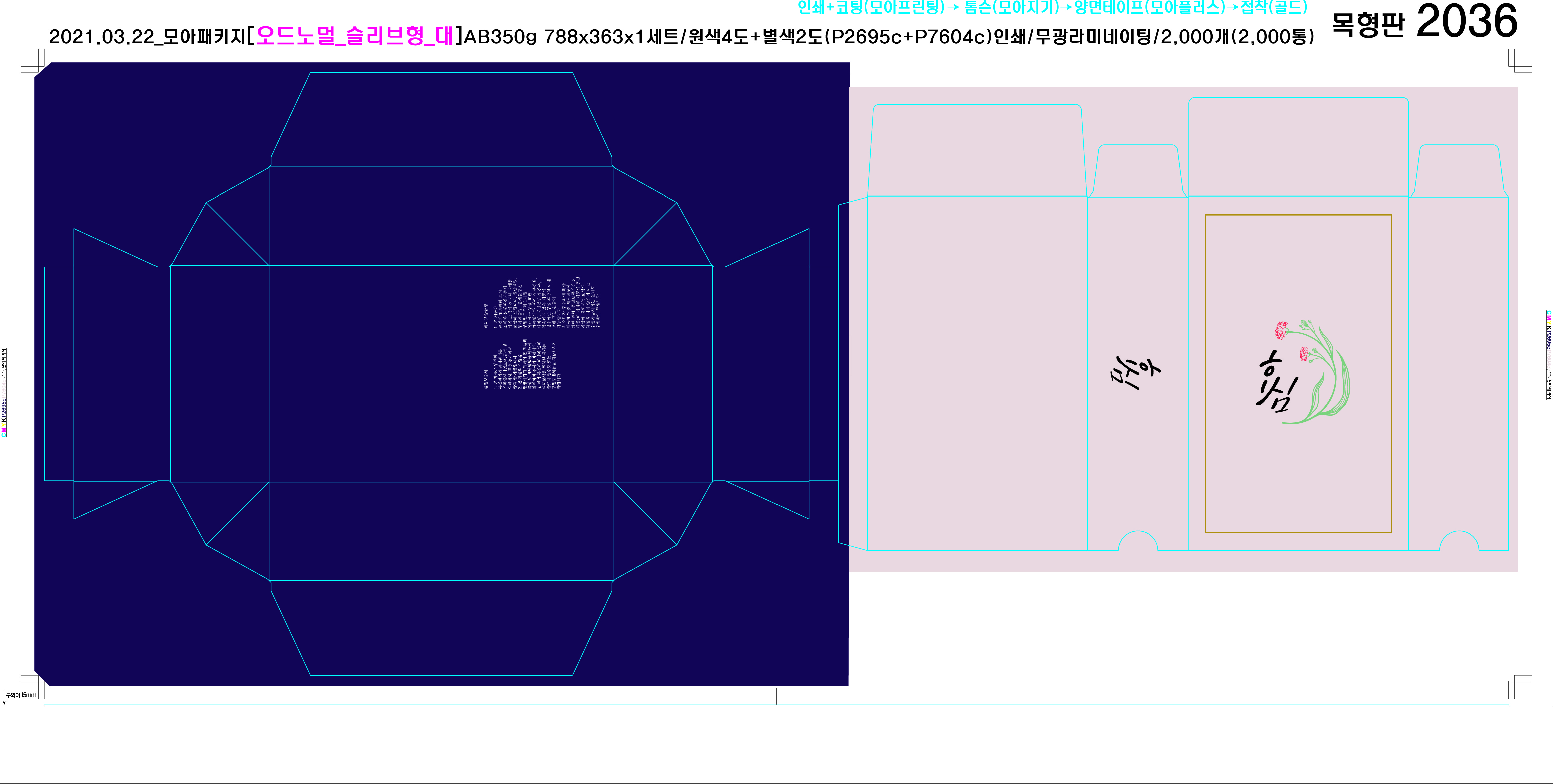 박스형태/사이즈(mm) 종이재질 인쇄 코팅 금은박 디자인도면