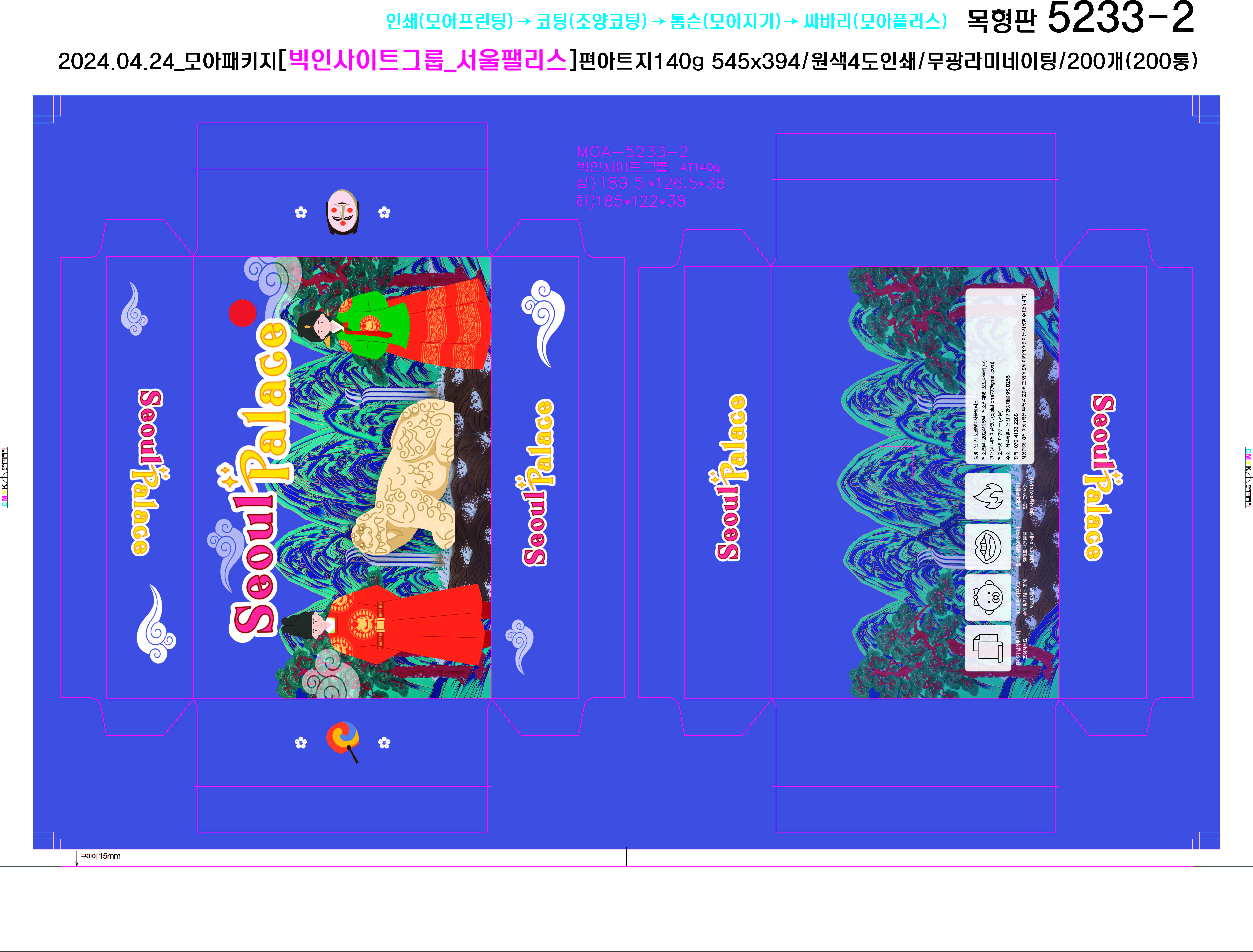박스형태/사이즈(mm) 종이재질 인쇄 코팅 금은박 디자인도면