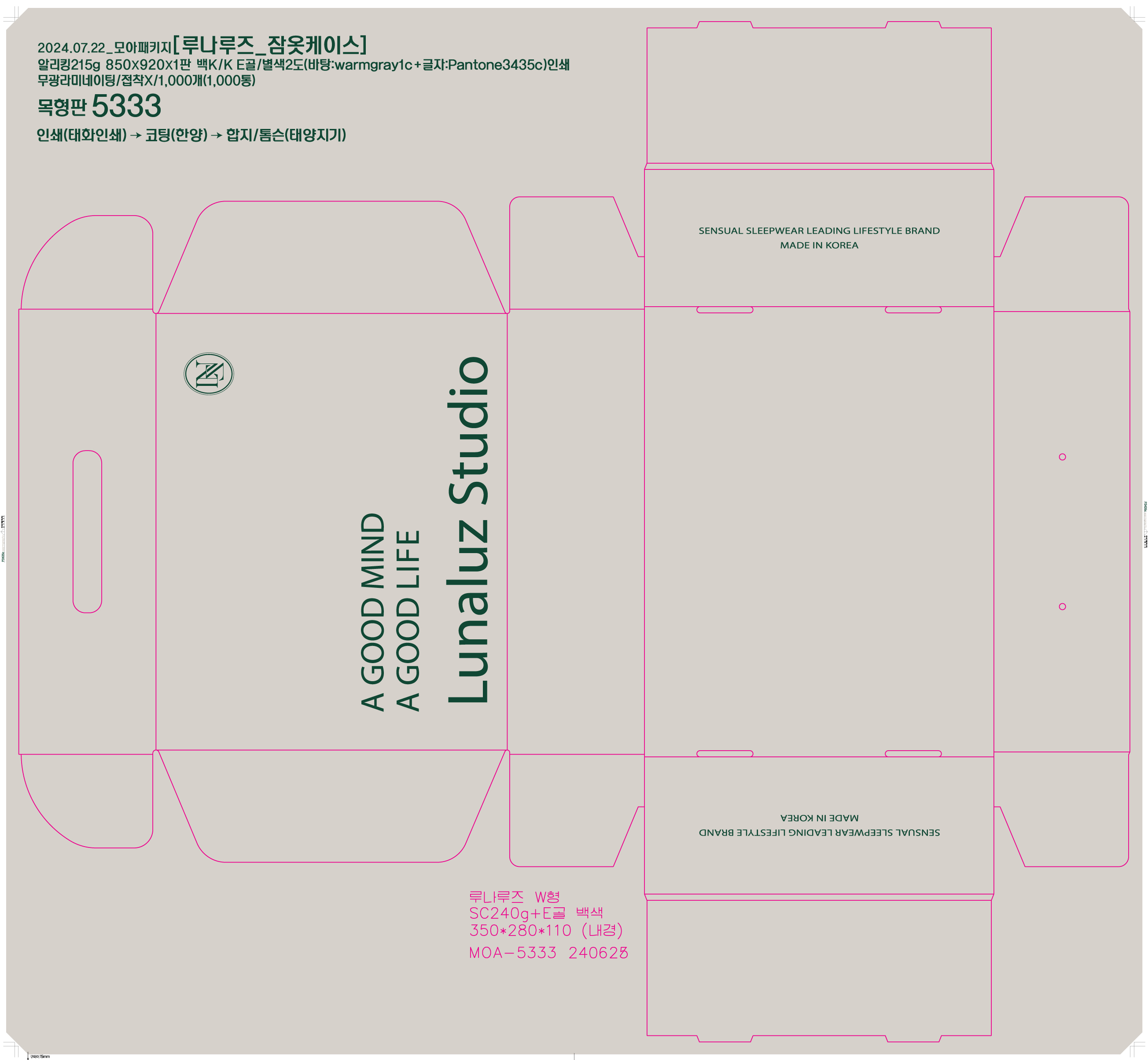 박스형태/사이즈(mm) 종이재질 인쇄 코팅 금은박 디자인도면